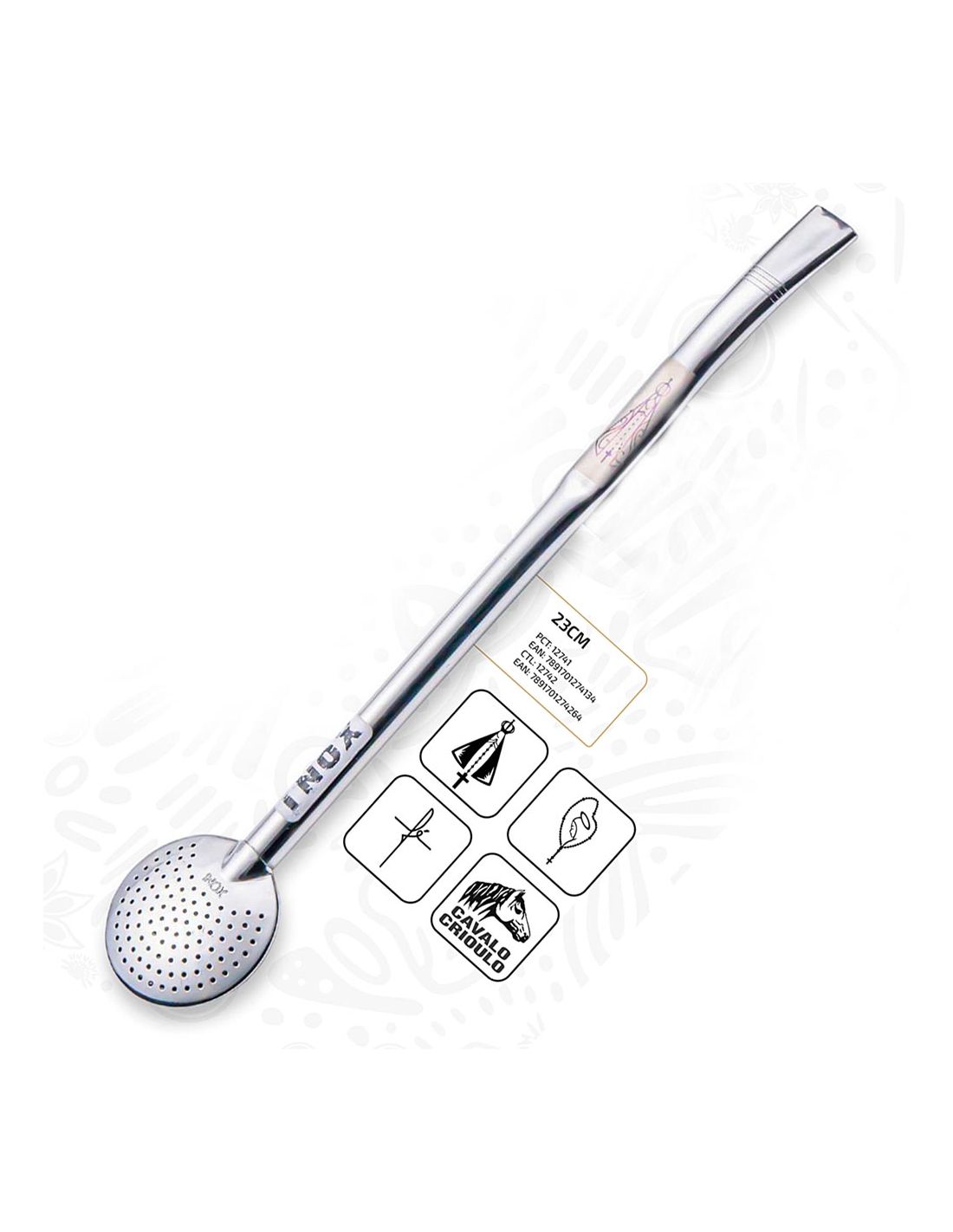 The Garibaldi Linha Inox Bombilla 23 cm is a high-quality stainless steel straw designed especially for Brazilian yerba mate, including finely cut chimarrão.